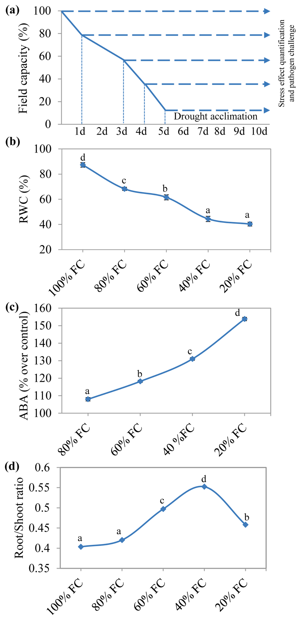 2.1. Drought Acclimated N. benthamiana Plants Showed Increased ABA and Root-Shoot Ratio