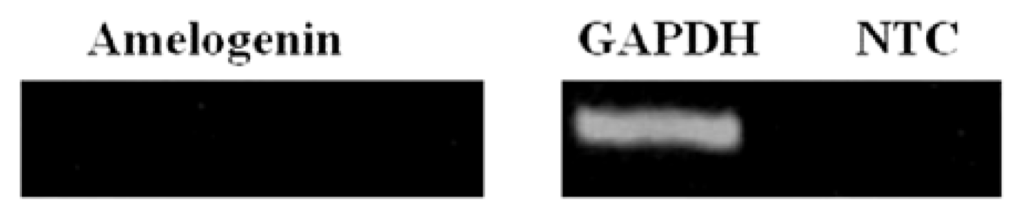 | Amelogenin | 5′-GGAGCAGCTTTTGCCATGCCT-3′ (forward) 5′-GTGGCCTTATGCTCTGGTAC-3′ (reverse) |