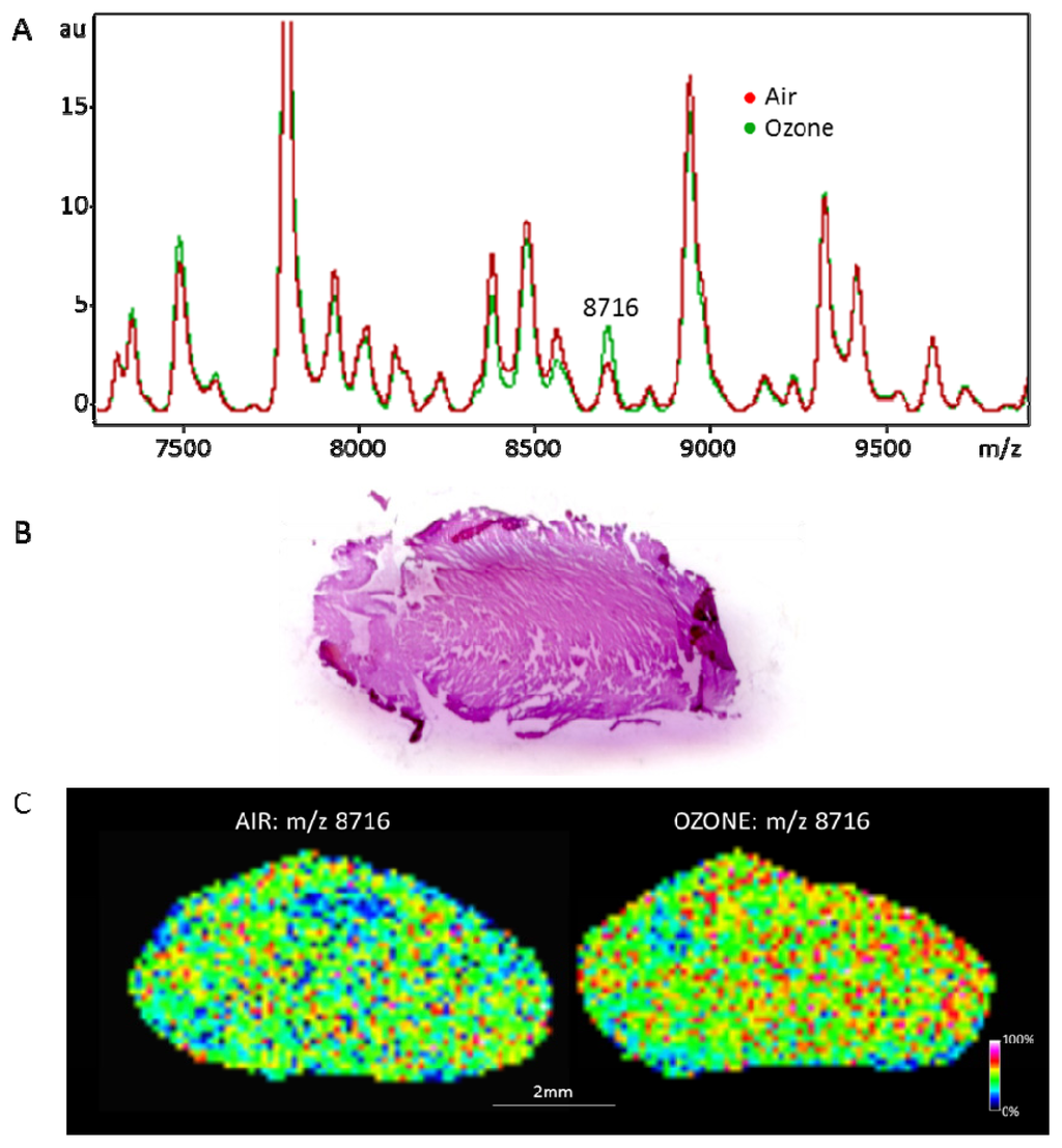 - Chaurand, P.; Fouchecourt, S.; DaGue, B.B.; Xu, B.J.; Reyzer, M.L.; Orgebin-Crist, M.C.; Caprioli, R.M. Profiling and imaging proteins in the mouse epididymis by imaging mass spectrometry. Proteomics 2003, 3, 2221–2239. [Google Scholar]
