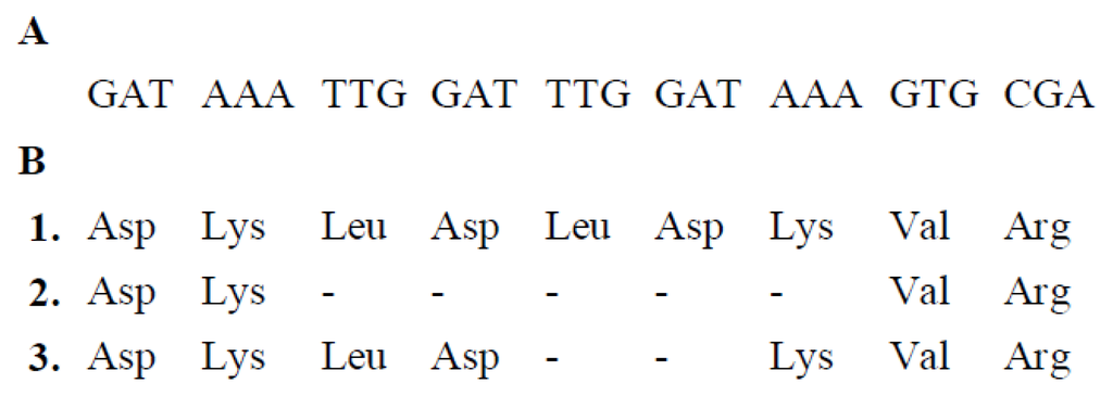 Fragment of the alignment of rpoA gene containing indel. (A) The nucleotide sequence; sites 688–714; (B) The amino acid sequence; sites 230–238. Group 1: L. album, L. tomentosum; group 2: L. amplexicaule, L. bifidum, L. gevorense, L. incisum; group 3: L. confertum, L. coutinhoi, L. flexuosum, L. galactophyllum, L. galeobdolon, L. garganicum, L. x holsaticum, L. lycium, L. macrodon, L. maculatum, L. moschatum, L. purpureum, L. orvala.