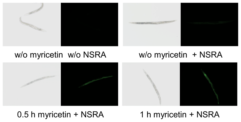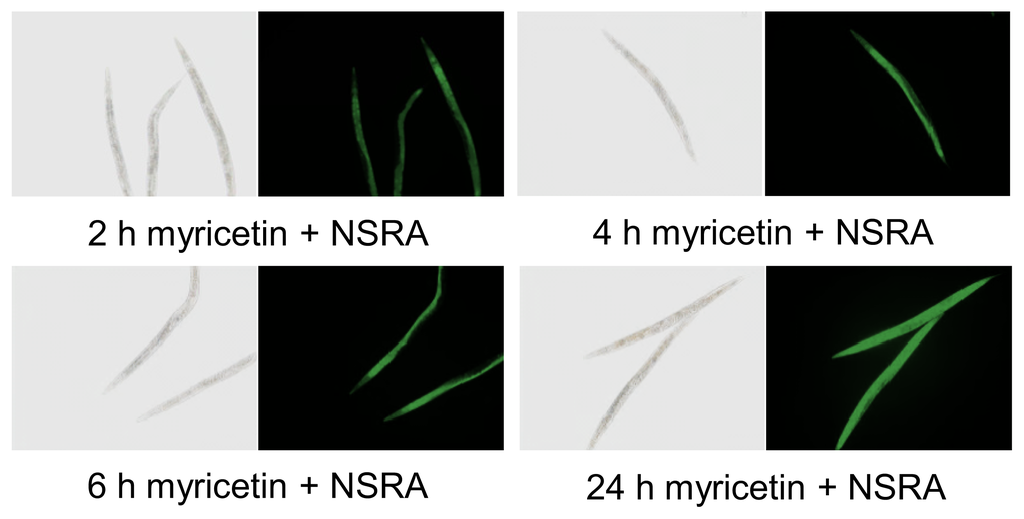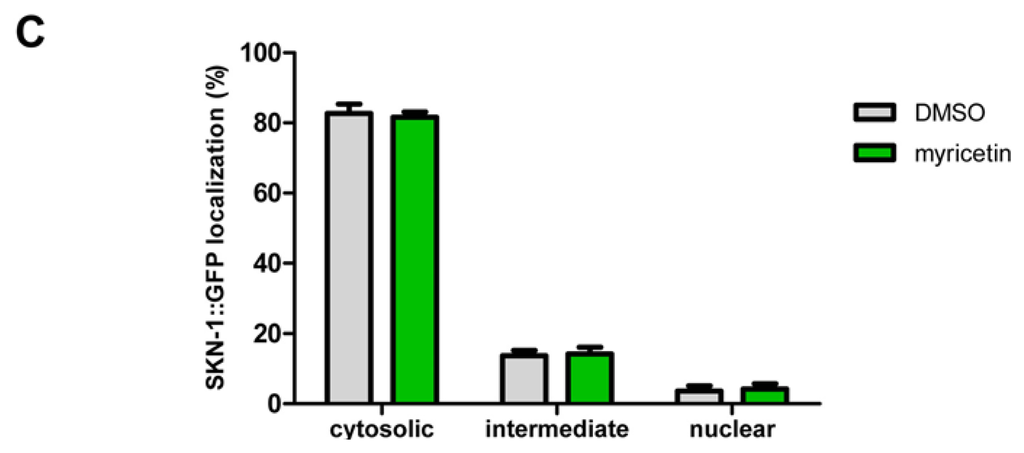 2.2.3. Effect of Myricetin on Translocation of DAF-16 and SKN-1