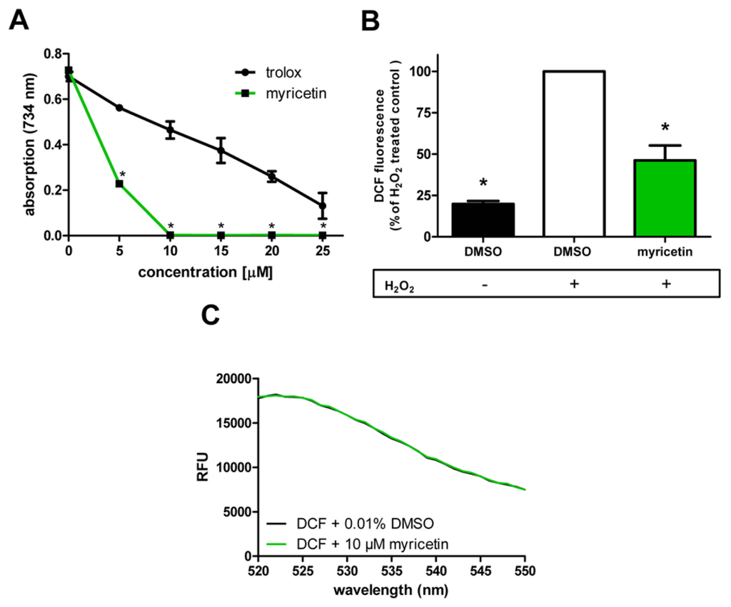 2.2. Anti-Oxidative Effects of Myricetin