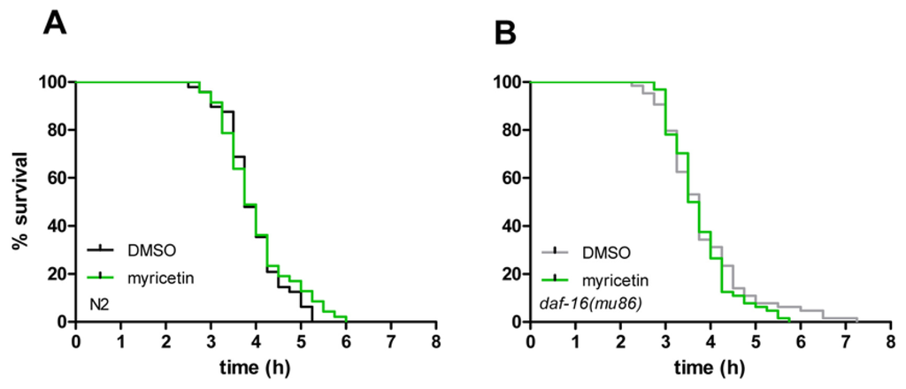 2.4. Myricetin Has No Effect on Resistance against Thermal Stress