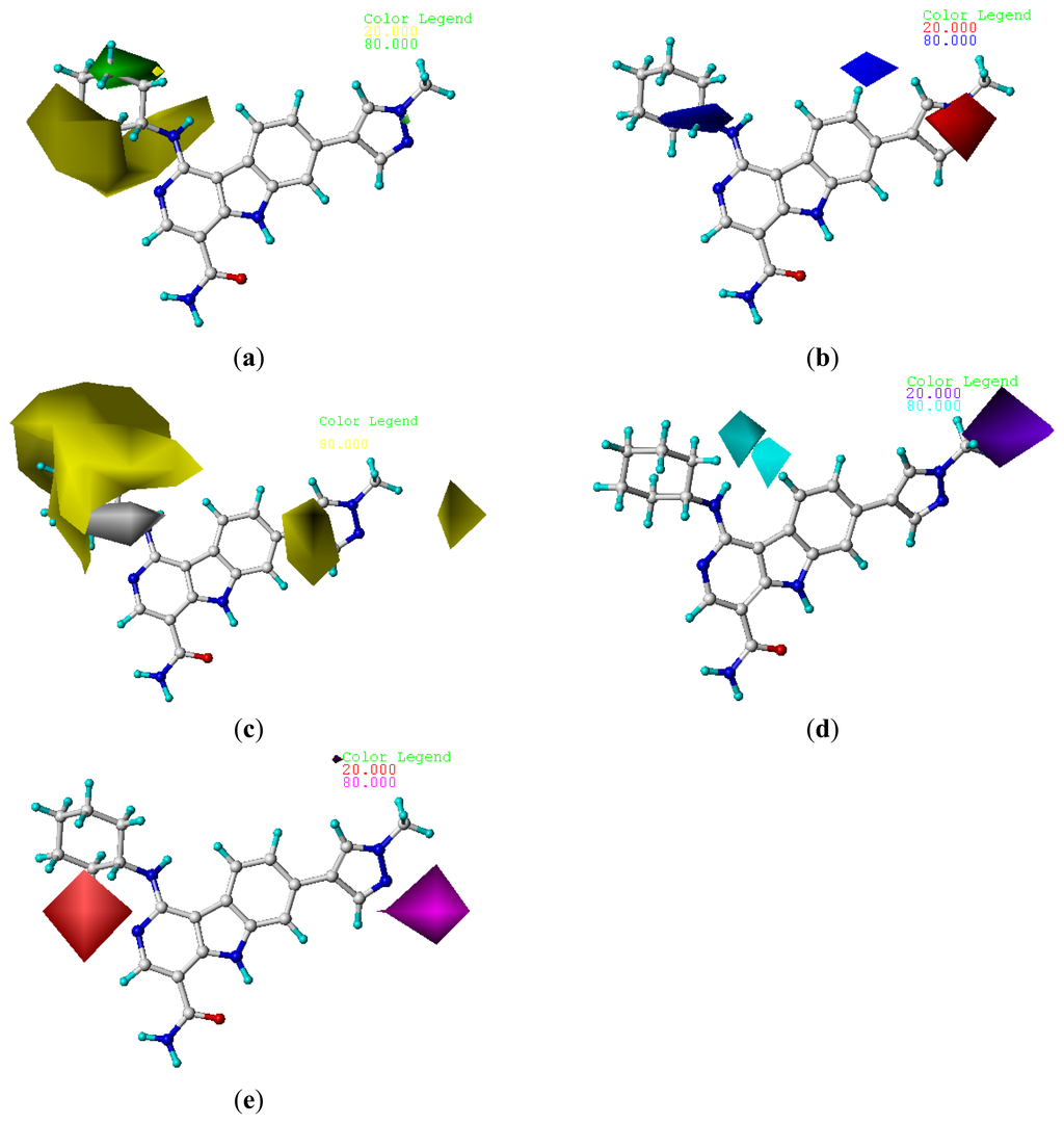 2.1. Comparative Molecular Field Analysis (CoMFA) and Comparative Molecular Similarity Indices Analysis (CoMSIA) Results