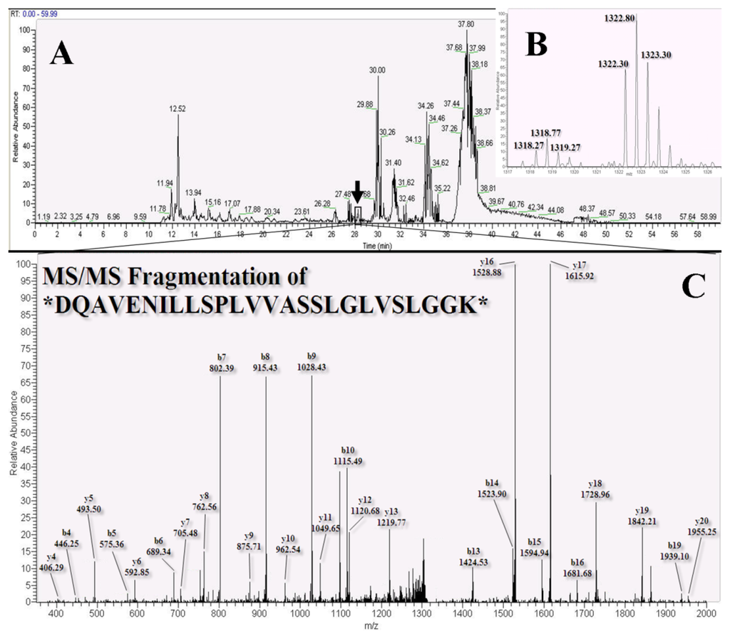 3.7. Nano-LC-MS/MS Analysis and Mascot Database Search