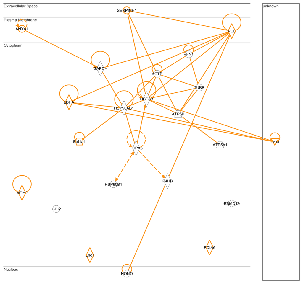 2.5. IPA: Pathways for Protein-Protein Interactions