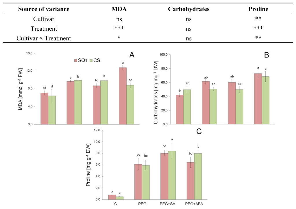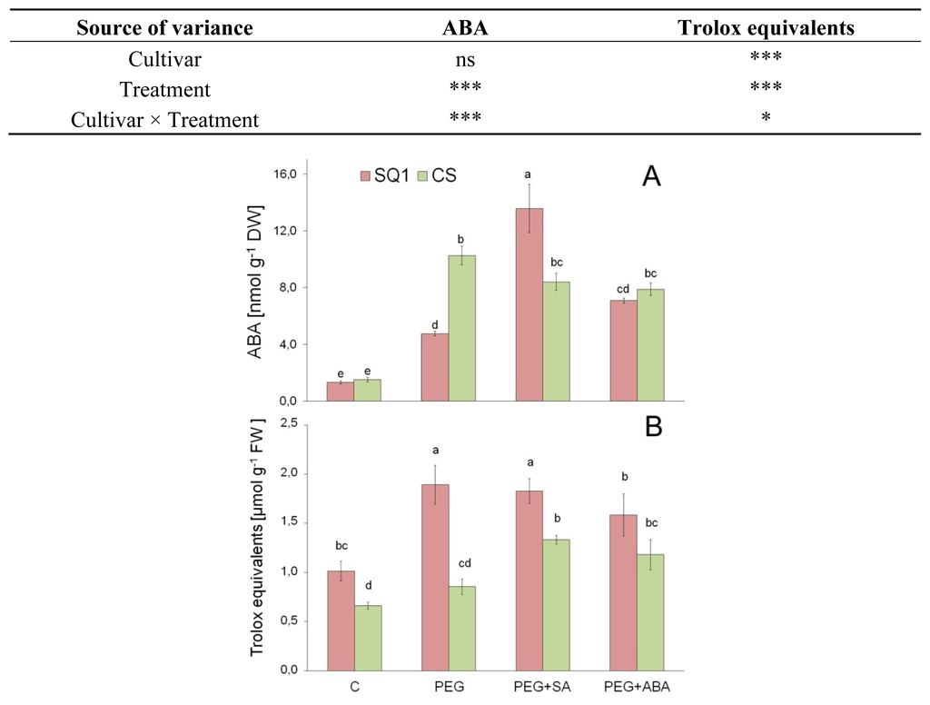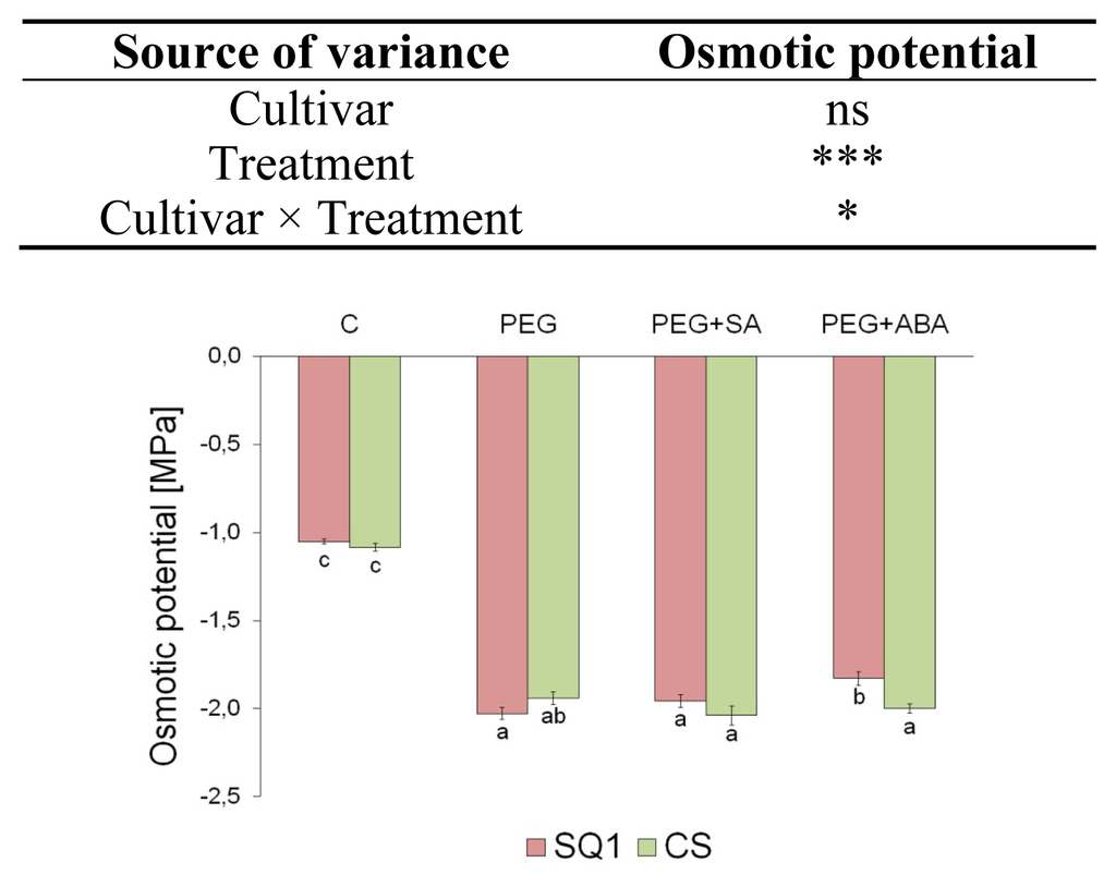 Marcińska, I.; Czyczyło-Mysza, I.; Skrzypek, E.; Grzesiak, M.T.; Janowiak, F.; Filek, M.; Dziurka, M.; Dziurka, K.; Waligórski, P.; Juzoń, K.; et al. Alleviation of Osmotic Stress Effects by Exogenous Application of Salicylic or Abscisic Acid on Wheat Seedlings. Int. J. Mol. Sci. 2013, 14, 13171-13193. https://doi.org/10.3390/ijms140713171