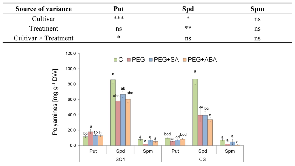 - Nemeth, M.; Janda, T.; Horvath, E.; Paldi, E.; Szalai, G. Exogenous salicylic acid increases polyamine content but may decrease drought tolerance in maize. Plant Sci 2002, 162, 569–574. [Google Scholar]