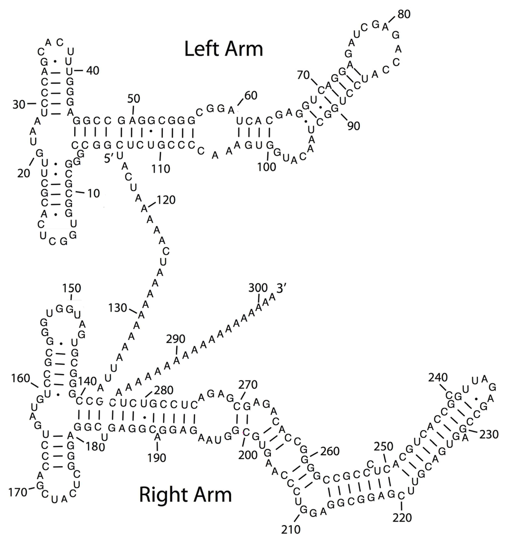Secondary structural model of Alu RNA. Modified from [15] with permission from Dr. Jennifer Doudna.