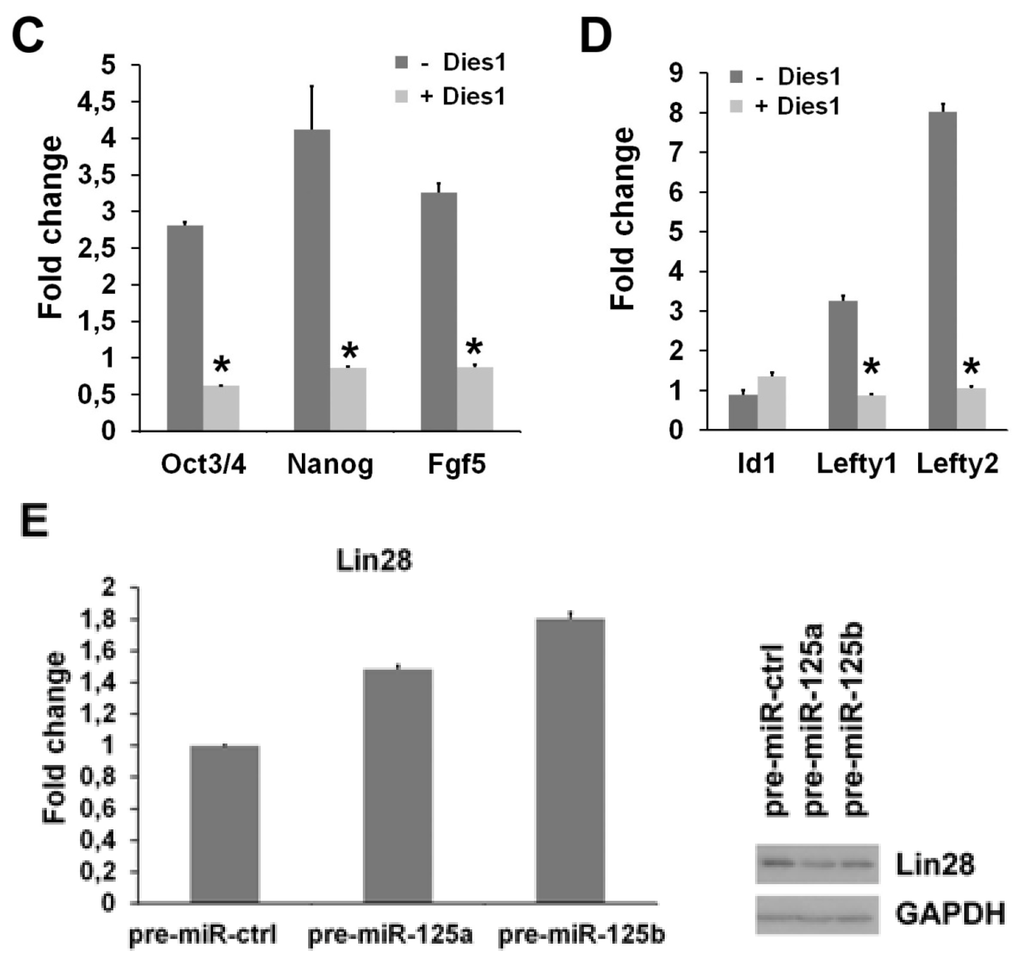 2.2. miR-125b Effects on the ESC-Epiblast Transition Are Due to Dies1