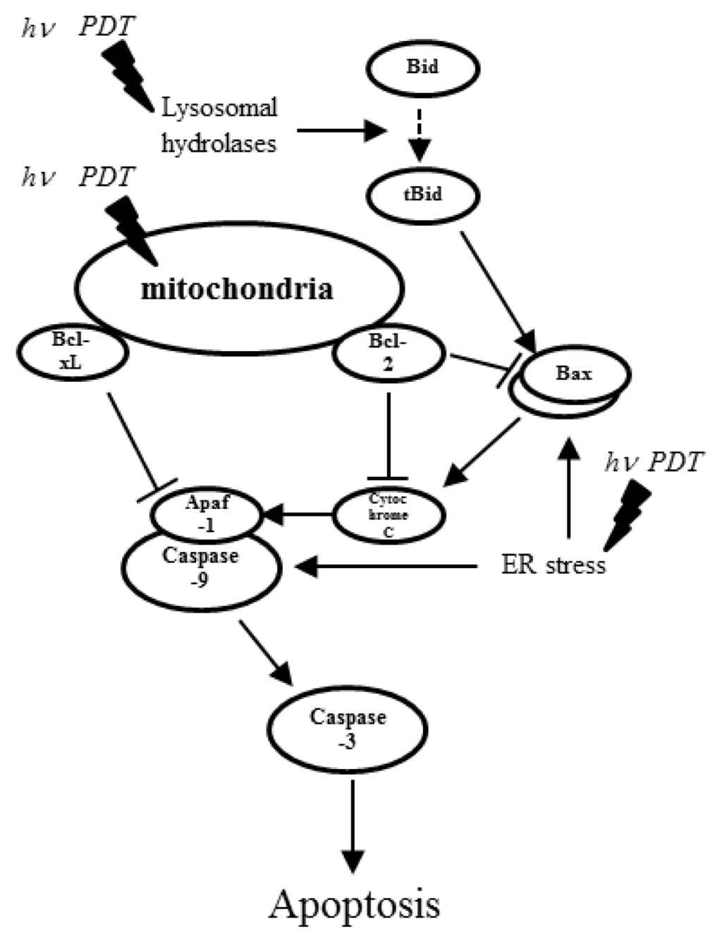 - Agostinis, P.; Buytaert, E.; Breyssens, H.; Hendrickx, N. Regulatory pathways in photodynamic therapy induced apoptosis. Photochem. Photobiol. Sci 2004, 3, 721–729. [Google Scholar]