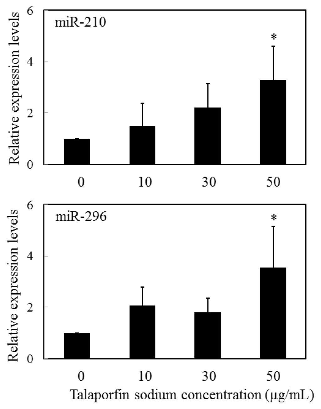 - Kushibiki, T. Photodynamic therapy induces microrna-210 and -296 expression in HeLa cells. J. Biophotonics 2010, 3, 368–372. [Google Scholar]