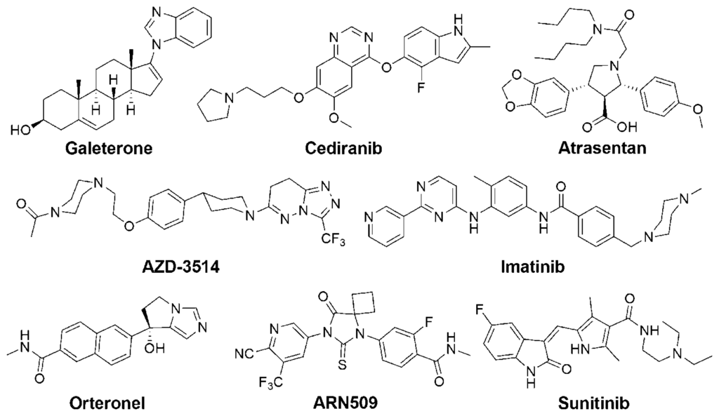 - American Association for Cancer Research Web Page. Early Clinical Data Show Galeterone Safe, Effective against Prostate Cancer. Available online: http://www.aacr.org/home/public--media/aacr-press-releases.aspx?d=2769 (on accessed 6 May 2013).