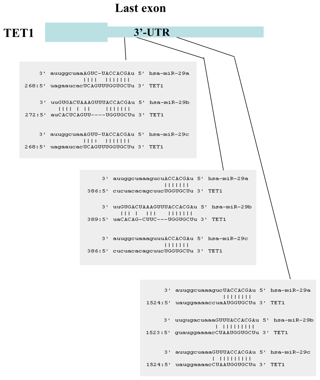 Three miR-29 target sites are present in the 3′-UTR of TET1.