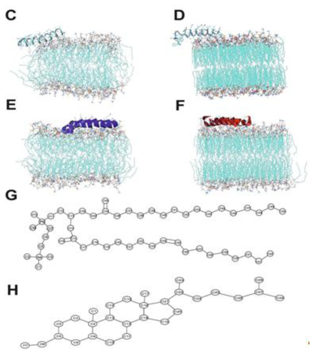 20], as reported earlier, the top leaflet bilayer lipids (located closer to the peptide) towards the hydrophobic core.