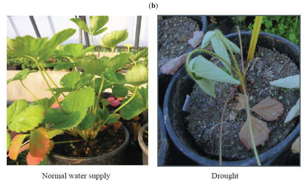 In the present study, we investigated tissue extracts from whole plants of two different Fragaria × ananassa cultivars to evaluate the presence and variation in the RIP content in the partially purified basic protein fraction, as related to the plant life cycle and the abiotic stress. The soil-borne pathogen infection-resistant cultivar Record and susceptible Dora [30,31] were compared.
