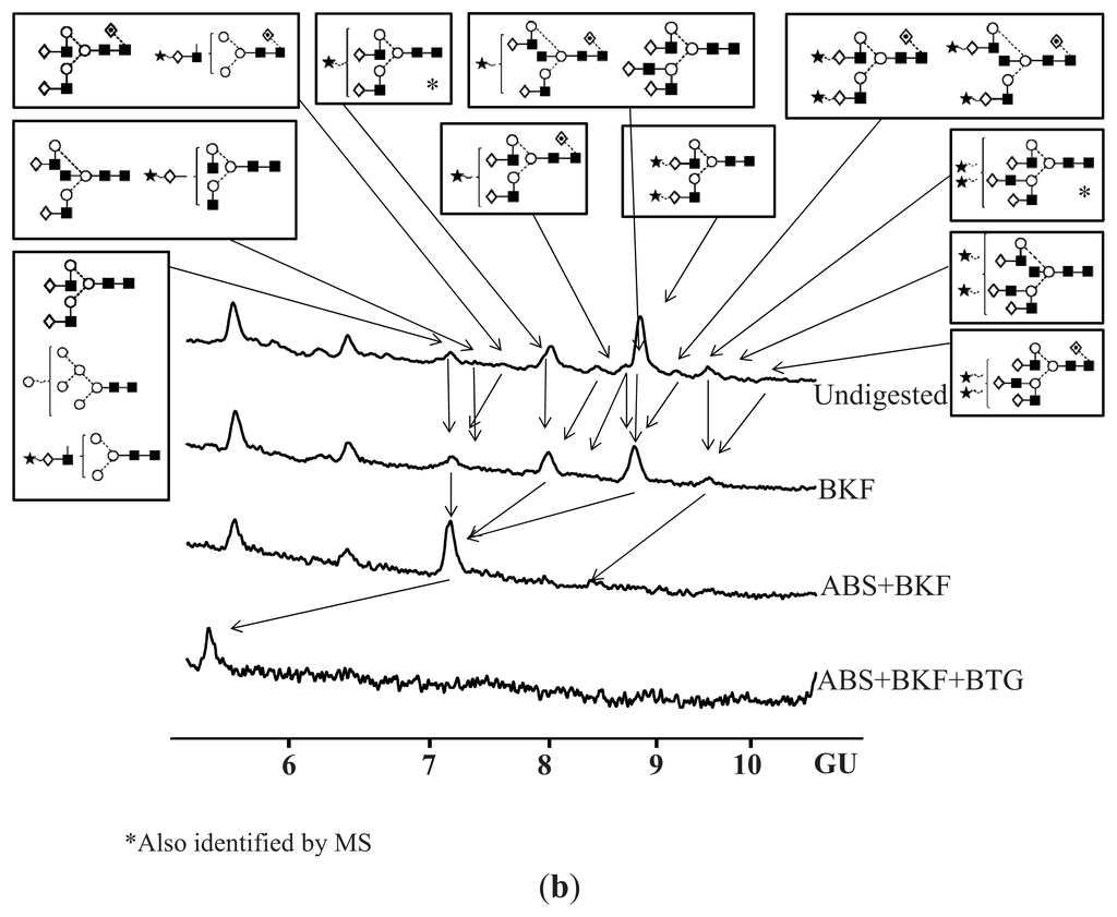 4.7. Exoglycosidase Digestion of 2AB Labelled N-Linked Glycans