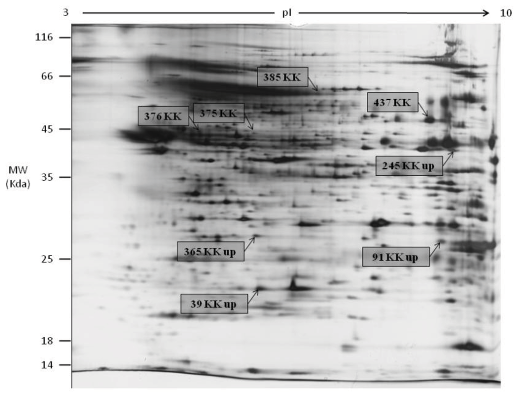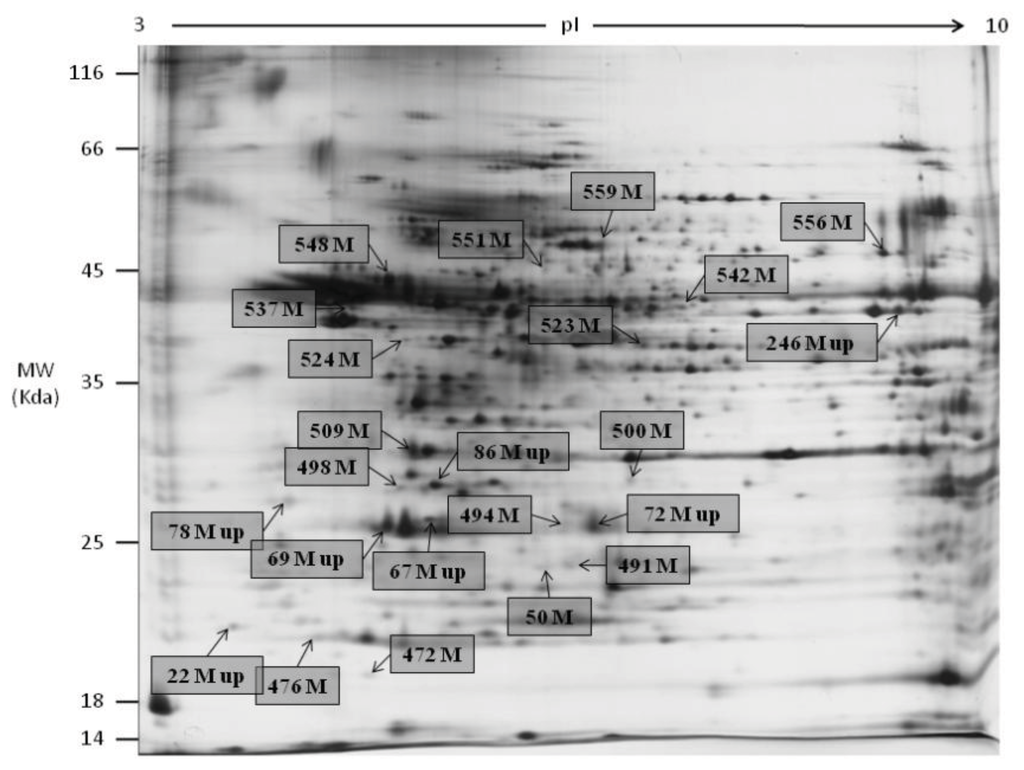 3.3. Two-Dimensional Gel Electrophoresis (2DGE)
