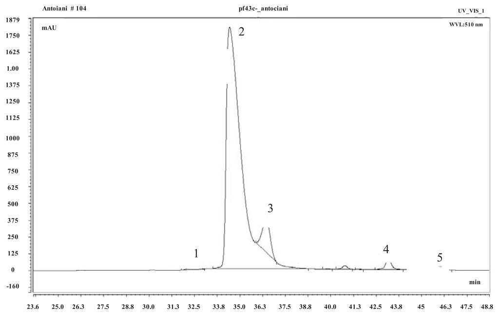 3.6. MS Anthocyanin Identification