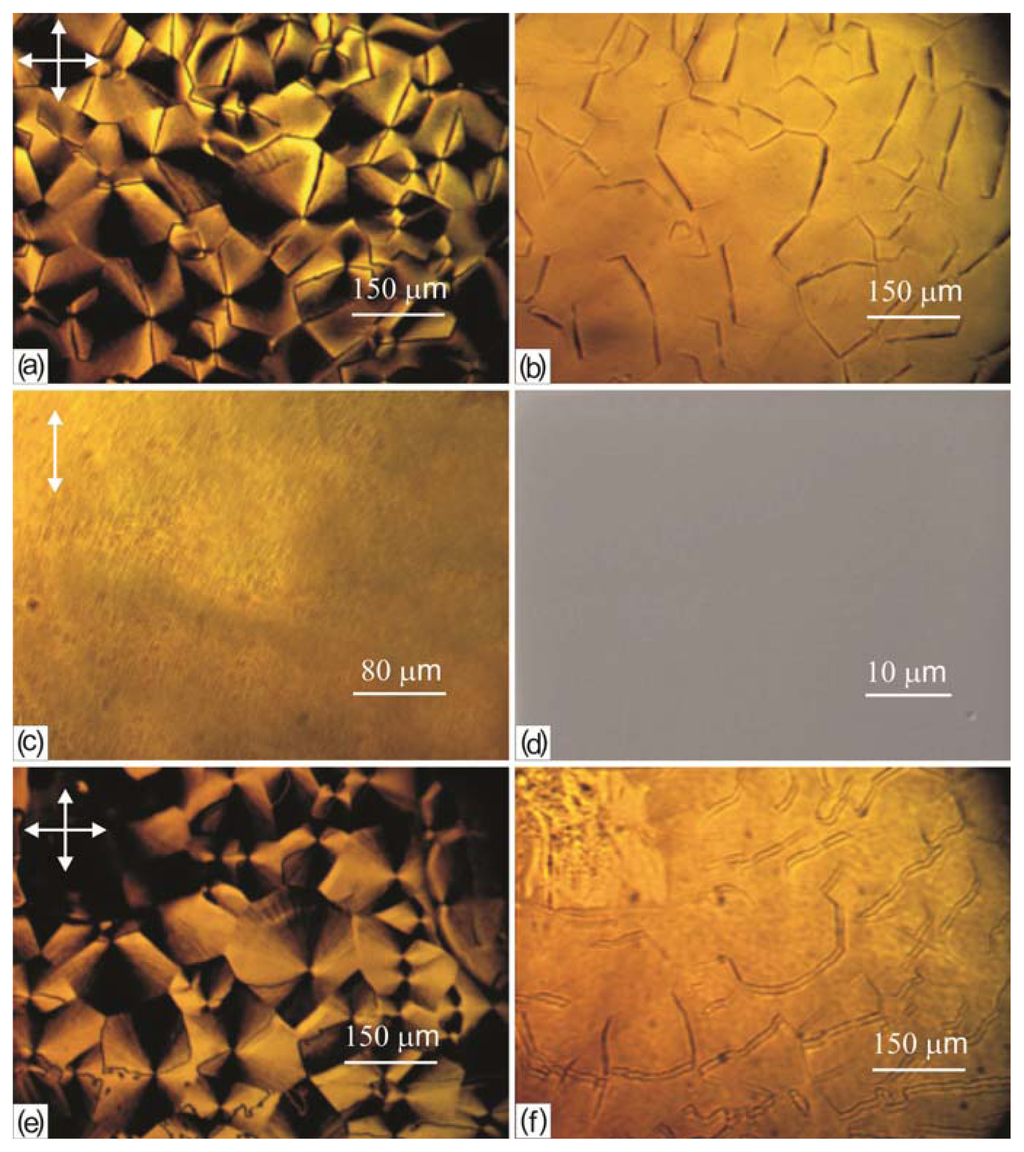 - Dierking, I. Textures of Liquid Crystal; Wiley-VCN: Weinheim, Germany; p. 2003.
