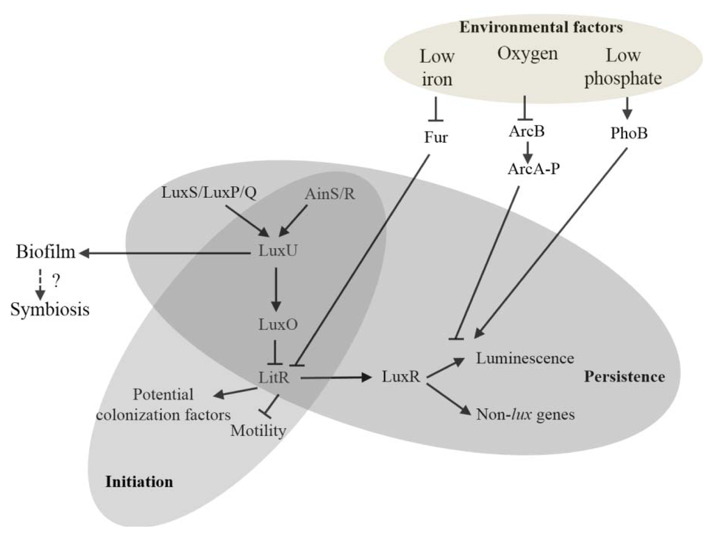 - Lupp, C.; Ruby, E.G. Vibrio fischeri uses two quorum-sensing systems for the regulation of early and late colonization factors. J. Bacteriol 2005, 187, 3620–3629. [Google Scholar]