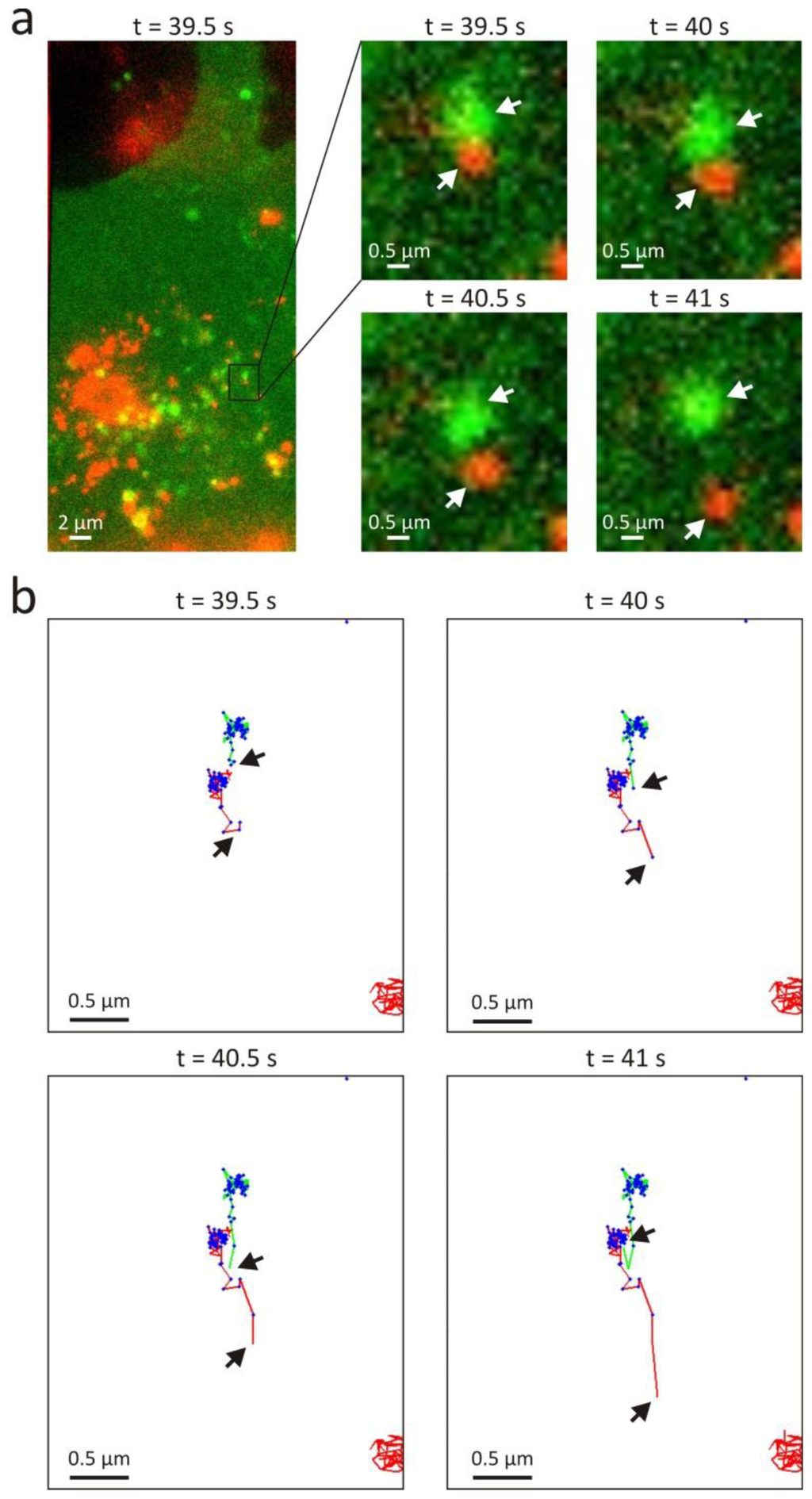 As shown in Figure 4a, these trajectories were also analysed with an earlier reported object based colocalization method that makes use of a maximum distance