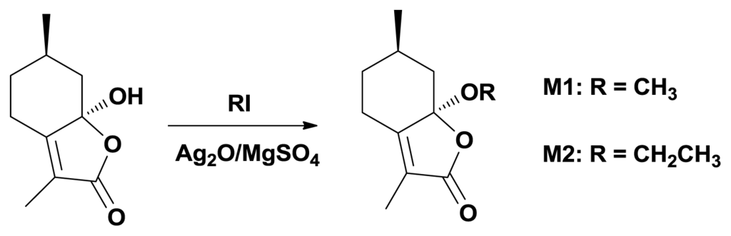 3.2.2. (6R,7aR)-7a-Ethoxy-3,6-Dimethyl-5,6,7,7a-Tetrahydrobenzofuran-2(4H)-One (M2)