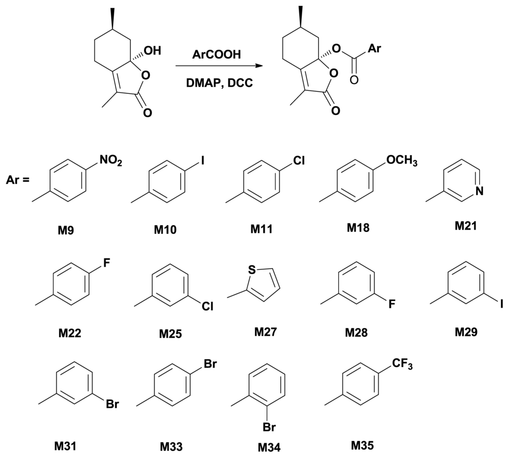 3.4.2. (6R,7aS)-3,6-Dimethyl-2-Oxo-2,4,5,6,7,7a-Hexahydrobenzofuran-7a-yl 4-Iodobenzoate (M10)