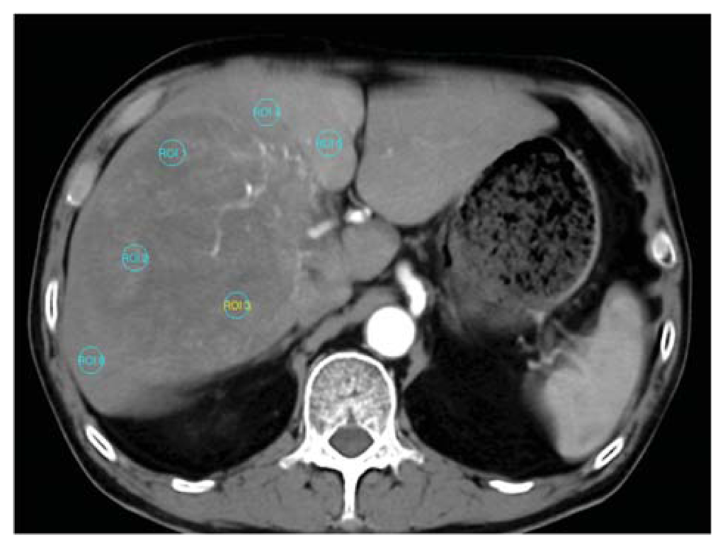 - Koh, T.S.; Thng, C.H.; Hartono, S.; Lee, P.S.; Choo, S.P.; Poon, D.Y.; Toh, H.C.; Bisdas, S. Dynamic contrast-enhanced CT imaging of hepatocellular carcinoma in cirrhosis: Feasibility of a prolonged dual-phase imaging protocol with tracer kinetics modeling. Eur. Radiol 2009, 19, 1184–1196. [Google Scholar]