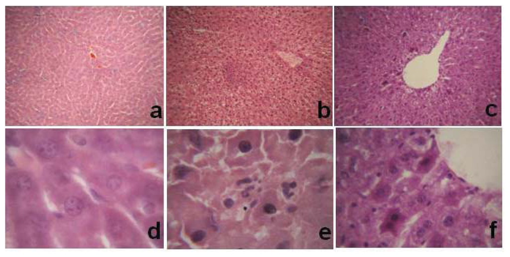 Livers from mice in all groups were rapidly excised and fixed in 10% formalin for at least 24 h, then transferred to 30% sucrose in 0.1 M PBS at 4 °C for 1 day. Then they were mounted in OCT compound and frozen, and serial 10-μm-thick sections were cut on a cryostat, mounted on microscope slides, and stored at −20 °C. For histological analysis, the sections were examined by HE staining in a standard manner, and morphological changes in hepatocytes were assessed under light microscopy.