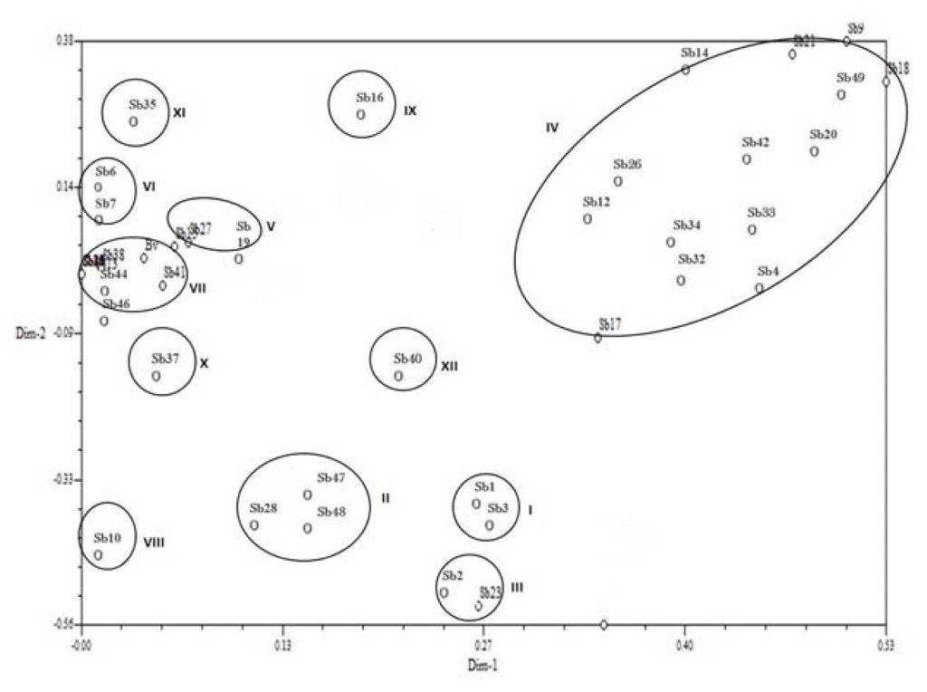 | 1 | Jawa | Sb1, Sb2, Sb26, Sb28, Sb32 | 4.71 c | 6.67 c | 0.44 c |