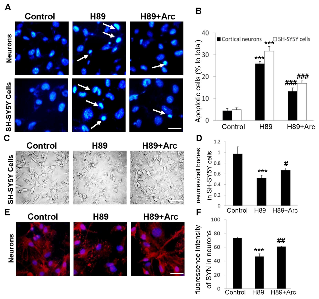 2.3. Arc Protects Neuron-Like Cells and Neurons against Apoptosis Induced by H89
