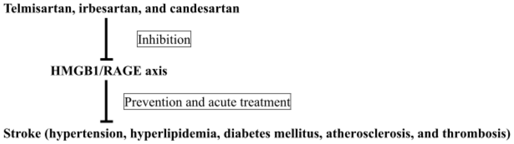 Kikuchi, K.; Tancharoen, S.; Ito, T.; Morimoto-Yamashita, Y.; Miura, N.; Kawahara, K.-i.; Maruyama, I.; Murai, Y.; Tanaka, E. Potential of the Angiotensin Receptor Blockers (ARBs) Telmisartan, Irbesartan, and Candesartan for Inhibiting the HMGB1/RAGE Axis in Prevention and Acute Treatment of Stroke. Int. J. Mol. Sci. 2013, 14, 18899-18924. https://doi.org/10.3390/ijms140918899