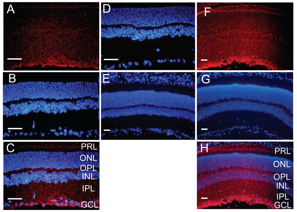 4.9. Retinal Cryosections, Immunofluorescence and Fluorescence Microscopy