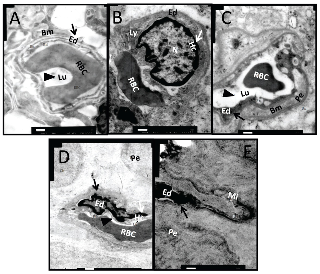 2.2. Ultrastructural Changes in Retinal Microvessel of Diabetic Rats