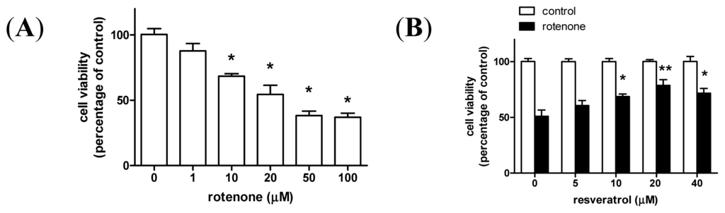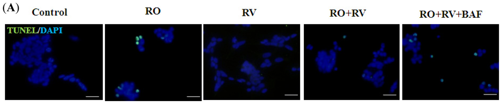 2.1. Resveratrol Prevents Rotenone-Induced Apoptosis in an Autophagy-Dependent Manner