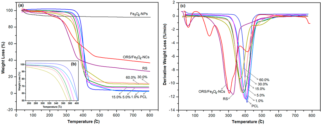 | Samples | T5% (°C) | T10% (°C) | T50% (°C) | T80% (°C) | Tmax (°C) | Residue at 500 °C (%) |