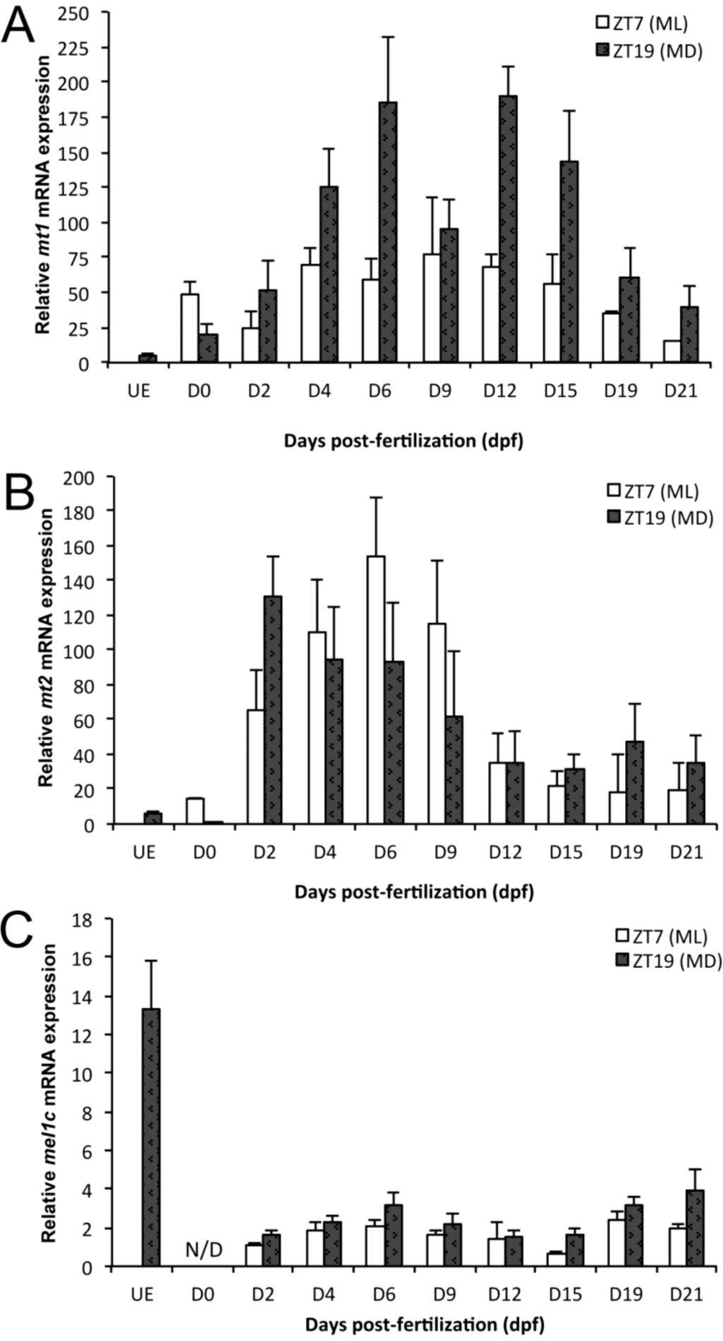 | Developmental stage | UE | 0 dpf | 2 dpf | 4 dpf | 6 dpf | 9 dpf | 12 dpf | 15 dpf | 19 dpf | 21 dpf | |||||||||||||||||||||
