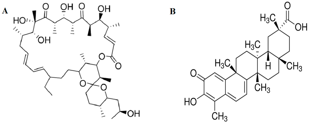 - Lee, J.H.; Koo, T.H.; Yoon, H.; Jung, H.S.; Jin, H.Z.; Lee, K.; Hong, Y.S.; Lee, J.J. Inhibition of NF-κB activation through targeting IκB kinase by celastrol, a quinone methide triterpenoid. Biochem. Pharmacol. 2006, 72, 1311–1321. [Google Scholar] [CrossRef] [PubMed]