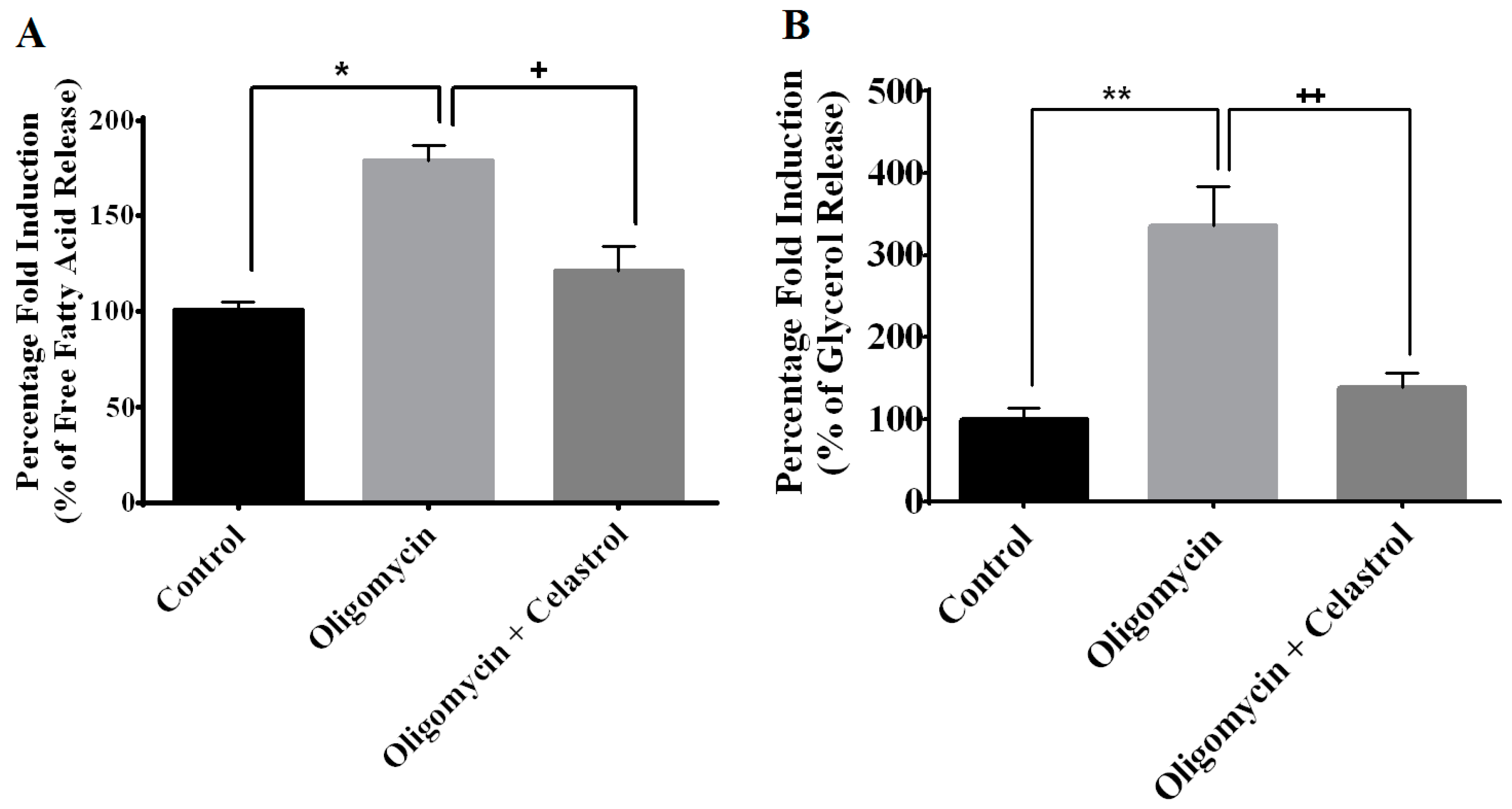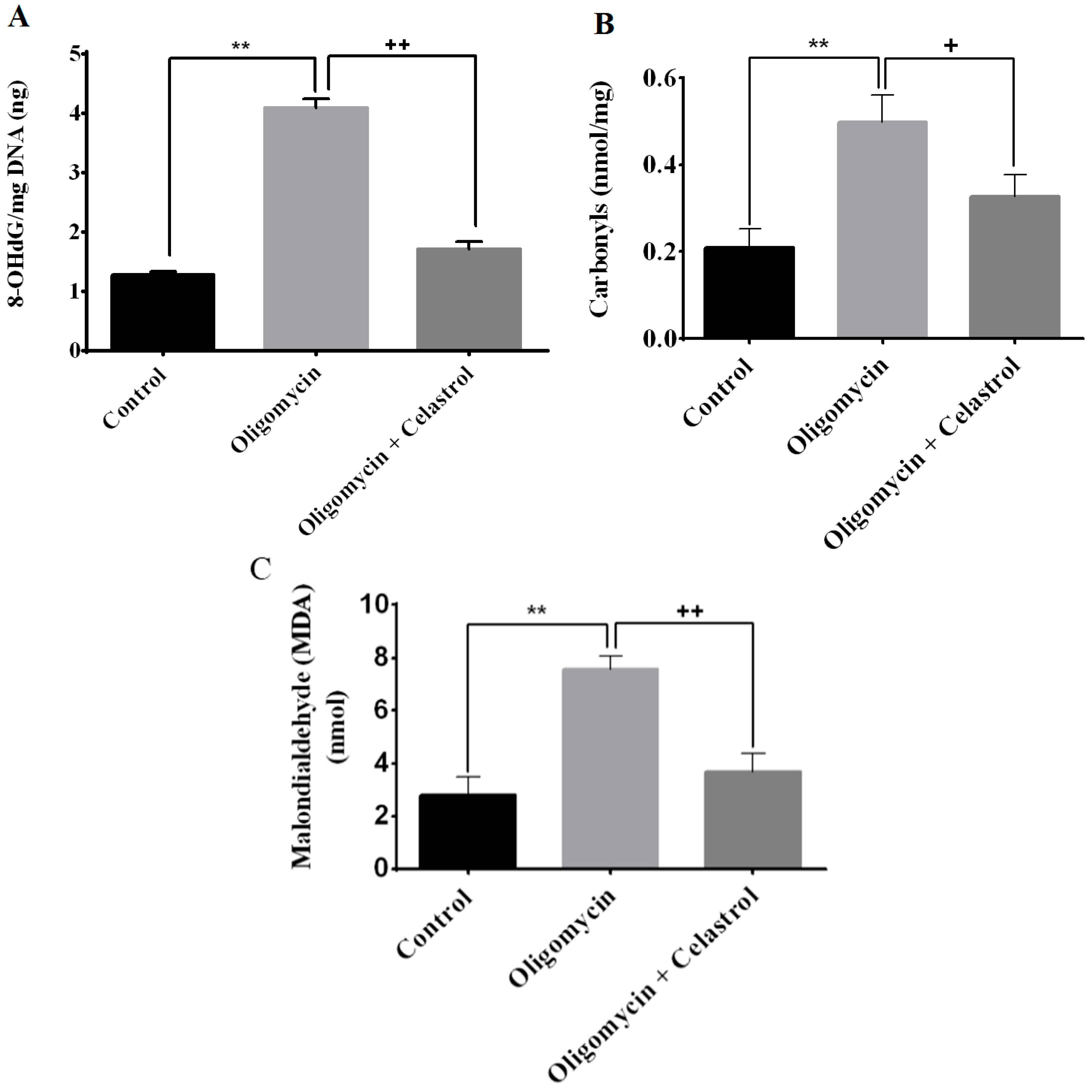 3.2. Oligomycin and Celastrol Treatment