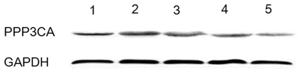 3.6. Western Blotting Analyses of PPP3CA Protein Expression