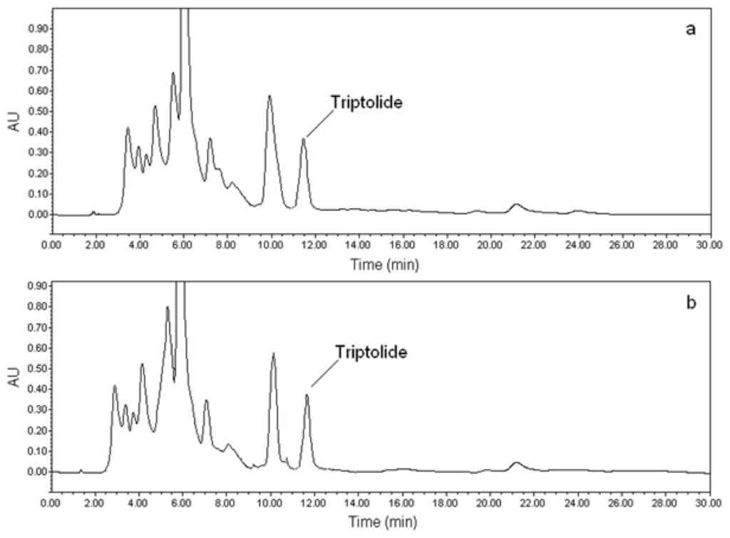 3.12. Determination of Triptolide by HPLC