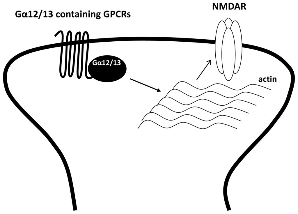 Gα12/13 coupled GPCRs can modulate NMDARs indirectly via their effects on actin cytoskeleton dynamics.