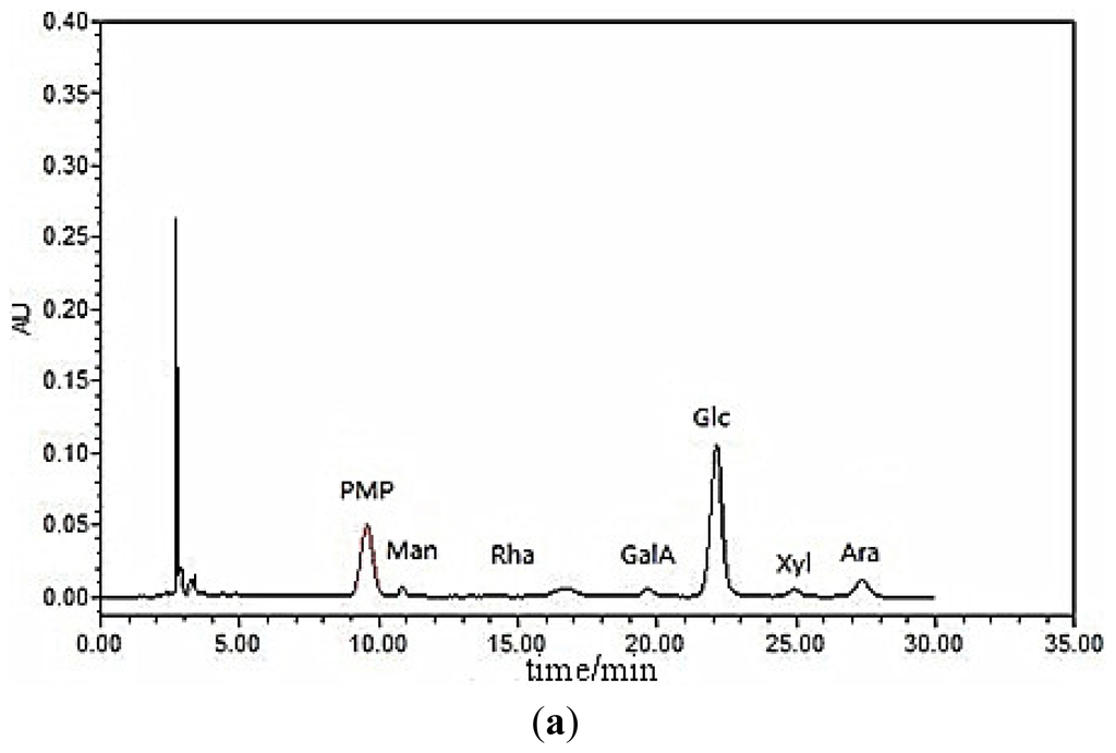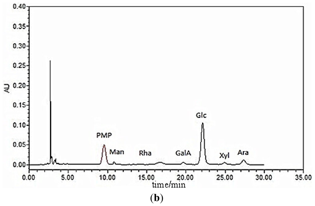 3.3. HPGPC to Determine the Molecular Weight of the Polysaccharide