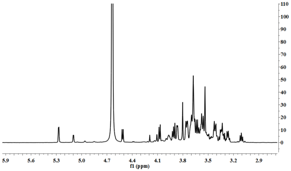 | →4)-α-d-Glcp-(1→ | 5.27/92.11 | 3.42/70.99 | 3.56/72.85 | 3.89/73.84 | 3.74/75.81 | 3.66,3.64/60.65 |