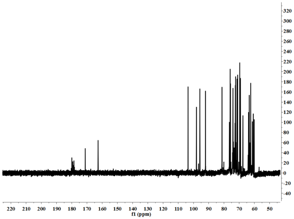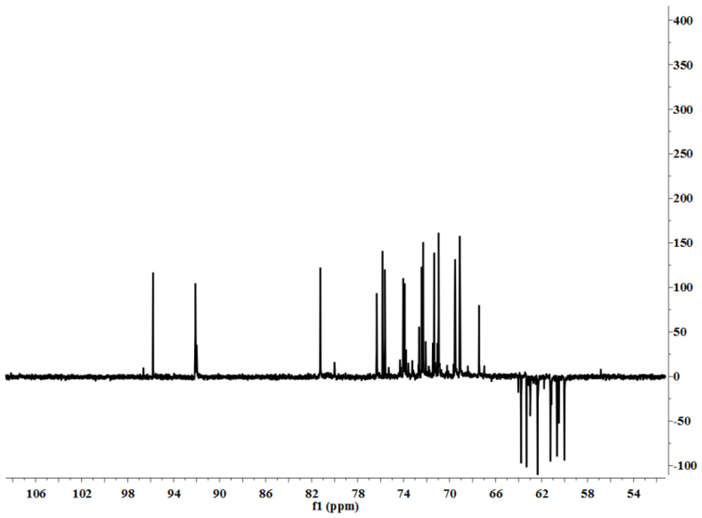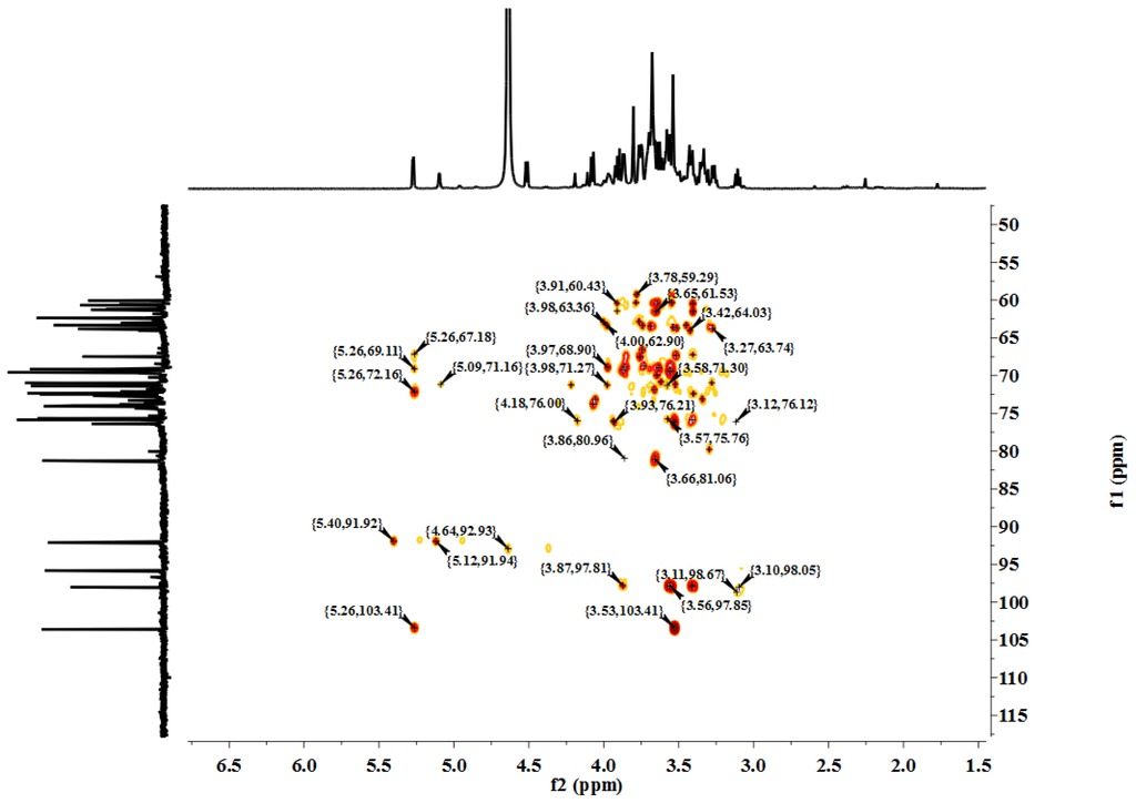 | →4,6)-β-d-Glcp-(1→ | 4.51/95.79 | 3.12/73.78 | 3.34/75.51 | 3.75/72.12 | 3.58/72.46 | 3.86,3.92/63.28 |
