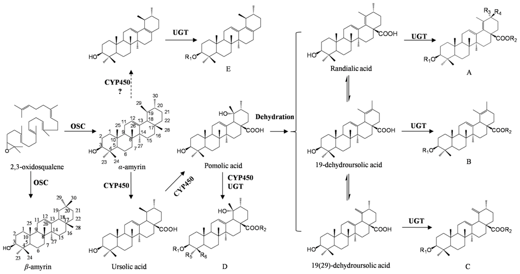 - Phillips, D.R.; Rasbery, J.M.; Bartel, B.; Matsuda, S.P. Biosynthetic diversity in plant triterpene cyclization. Curr. Opin. Plant Biol 2006, 9, 305–314. [Google Scholar]