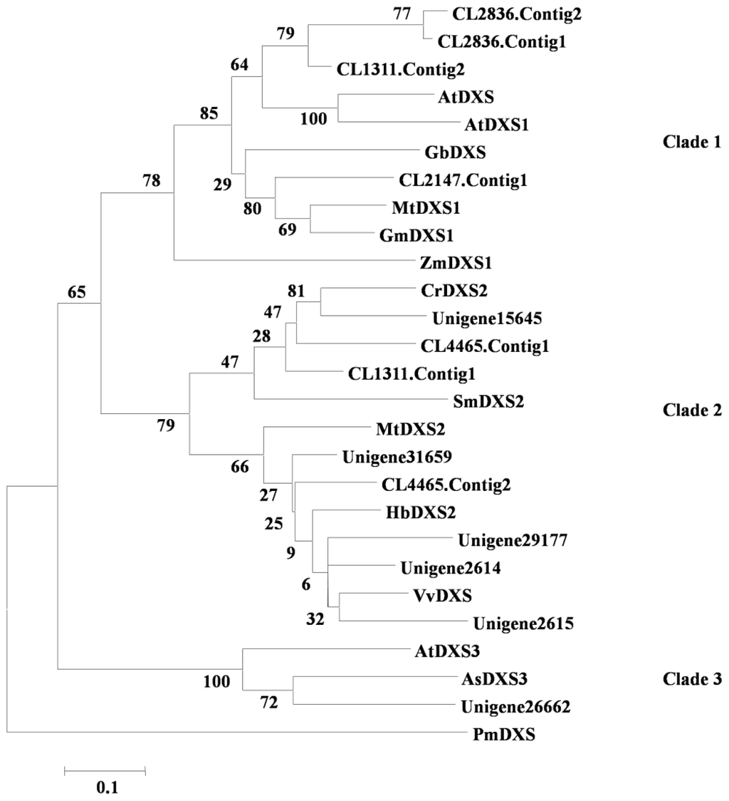 - Cordoba, E.; Porta, H.; Arroyo, A.; San Roman, C.; Medina, L.; Rodriguez-Concepcion, M.; Leon, P. Functional characterization of the three genes encoding 1-deoxy-d-xylulose-5-phosphate synthase in maize. J. Exp. Bot 2011, 62, 2023–2038. [Google Scholar]