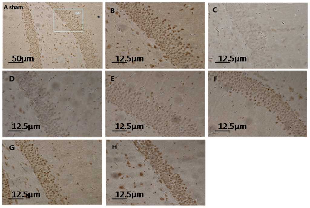 2.1. Expression of Hippocampal S100A6: Immunohistochemical Staining, Protein, and mRNA Levels