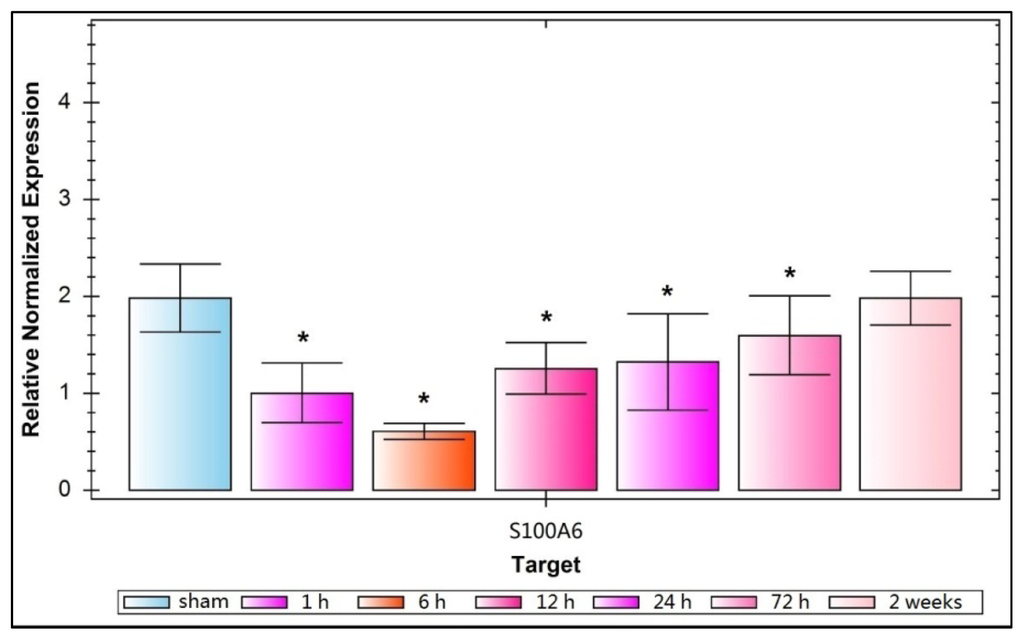Fang, B.; Liang, M.; Yang, G.; Ye, Y.; Xu, H.; He, X.; Huang, J.H. Expression of S100A6 in Rat Hippocampus after Traumatic Brain Injury Due to Lateral Head Acceleration. Int. J. Mol. Sci. 2014, 15, 6378-6390. https://doi.org/10.3390/ijms15046378